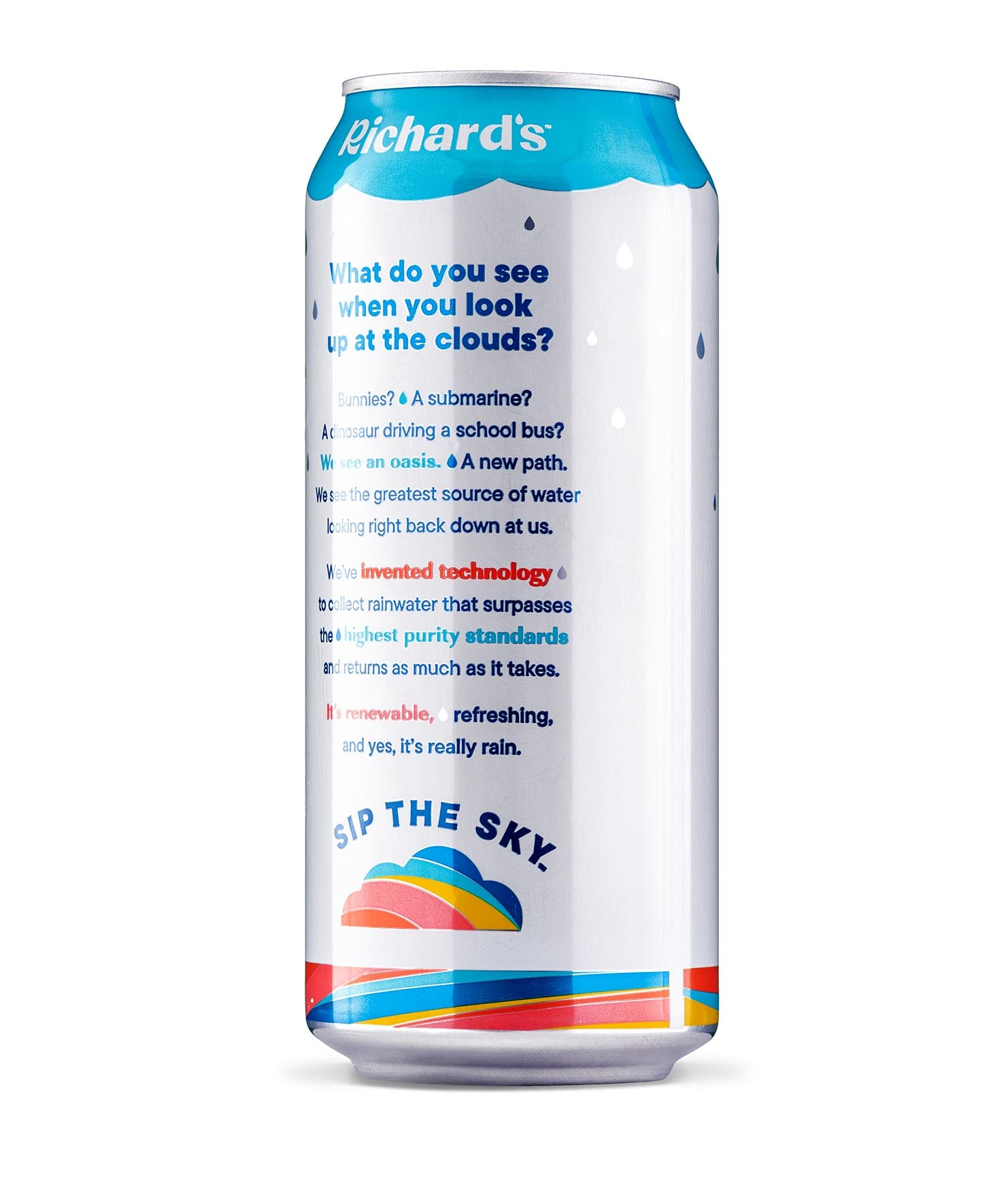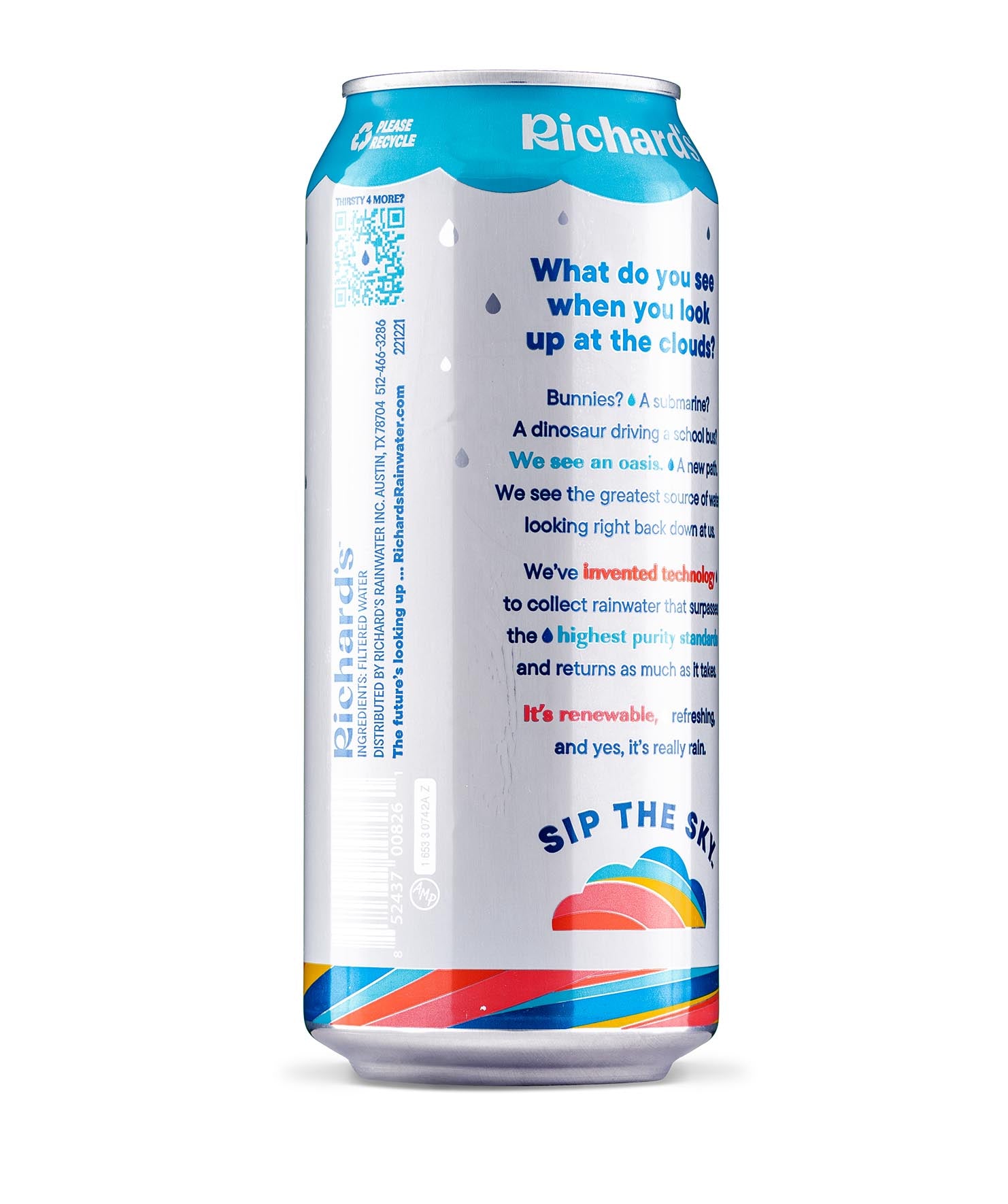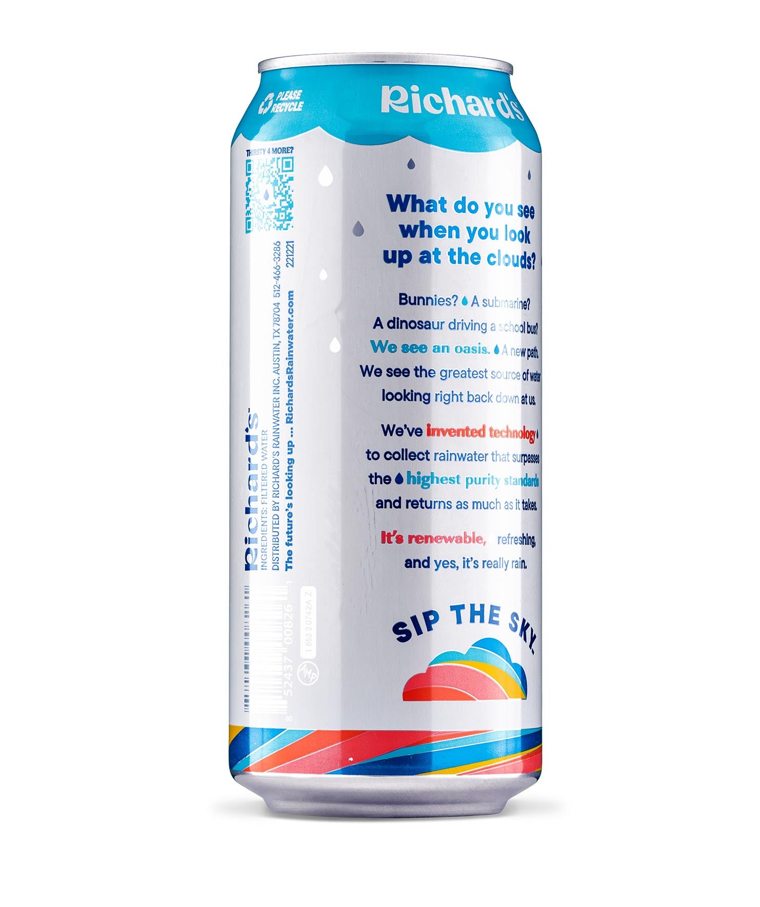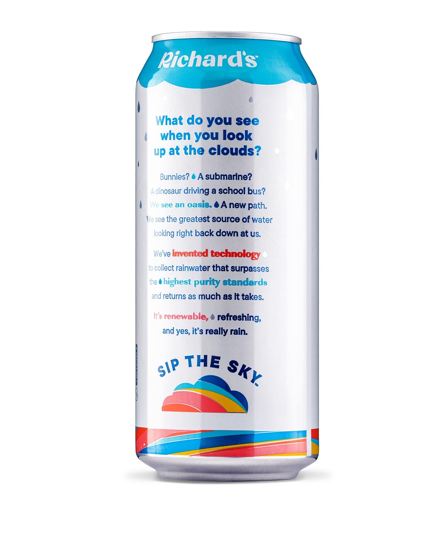 So clean and smooth, it’s almost sweet. You’ve never had water like this: 100% pure rain in an infinitely recyclable can. Plus, it’s cleaner than the strictest bottled water standards. We don’t need to put anything in it - no chlorine, fluoride, PFAS, BPA… you name it. Just like Mama Nature intended.