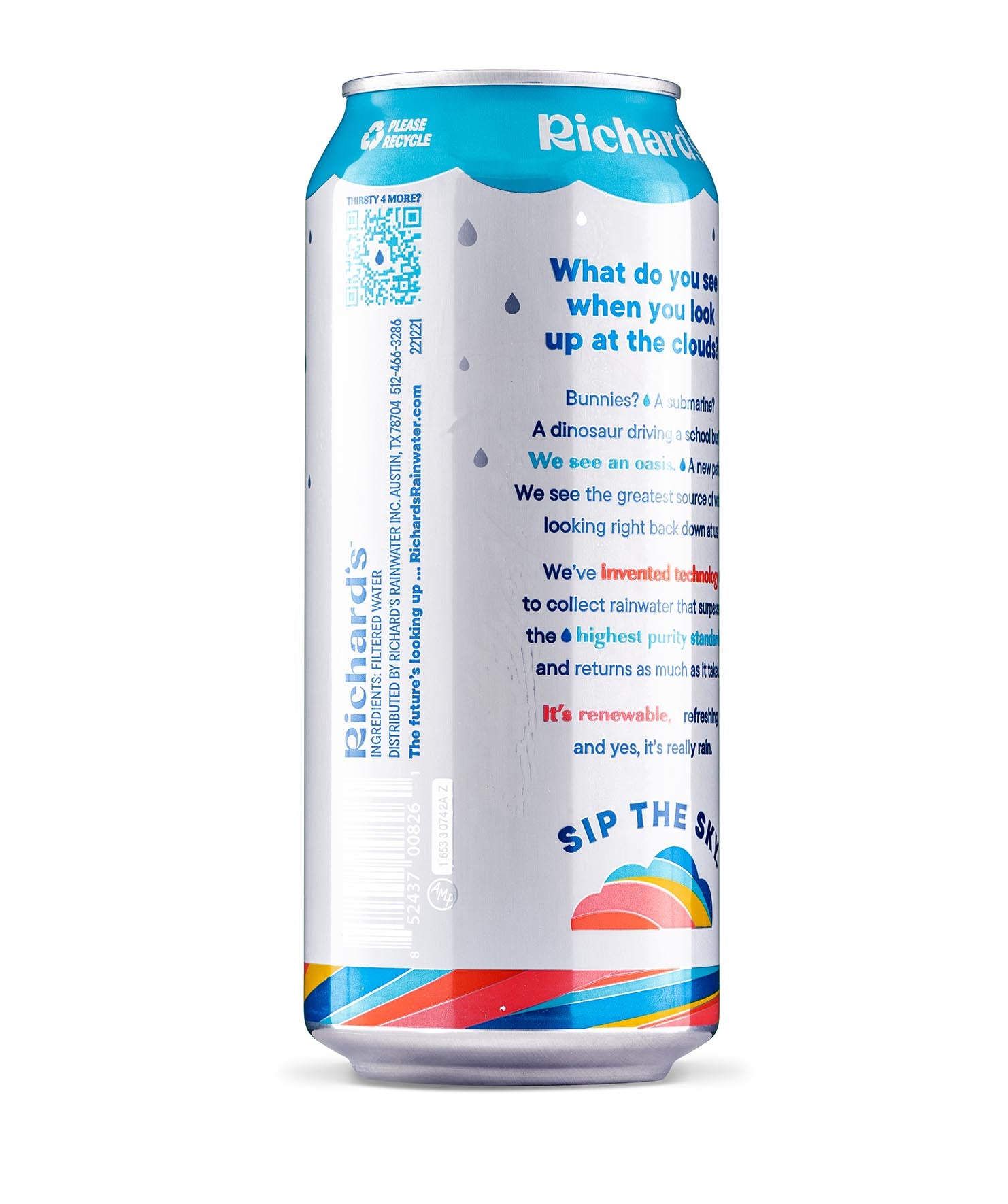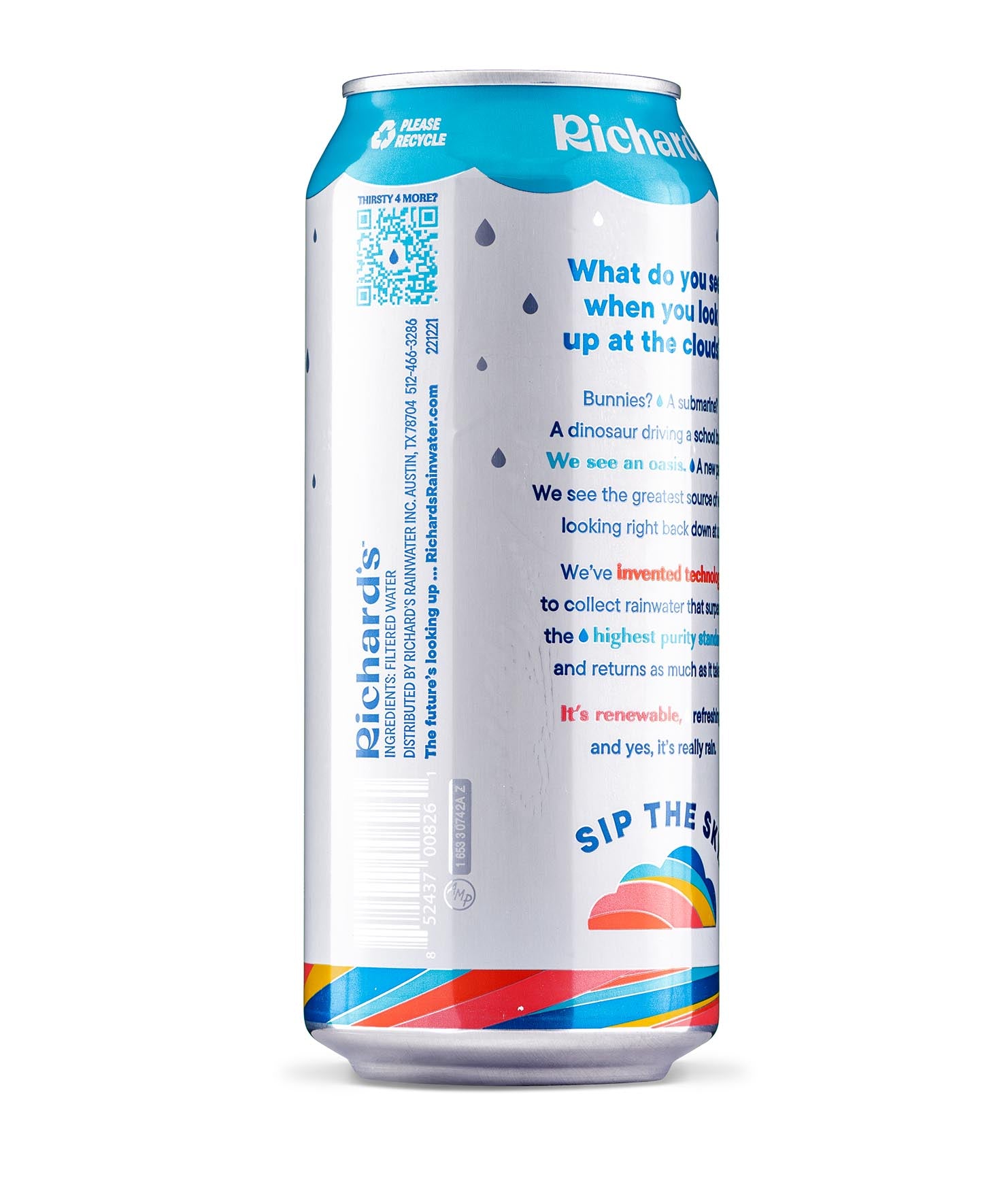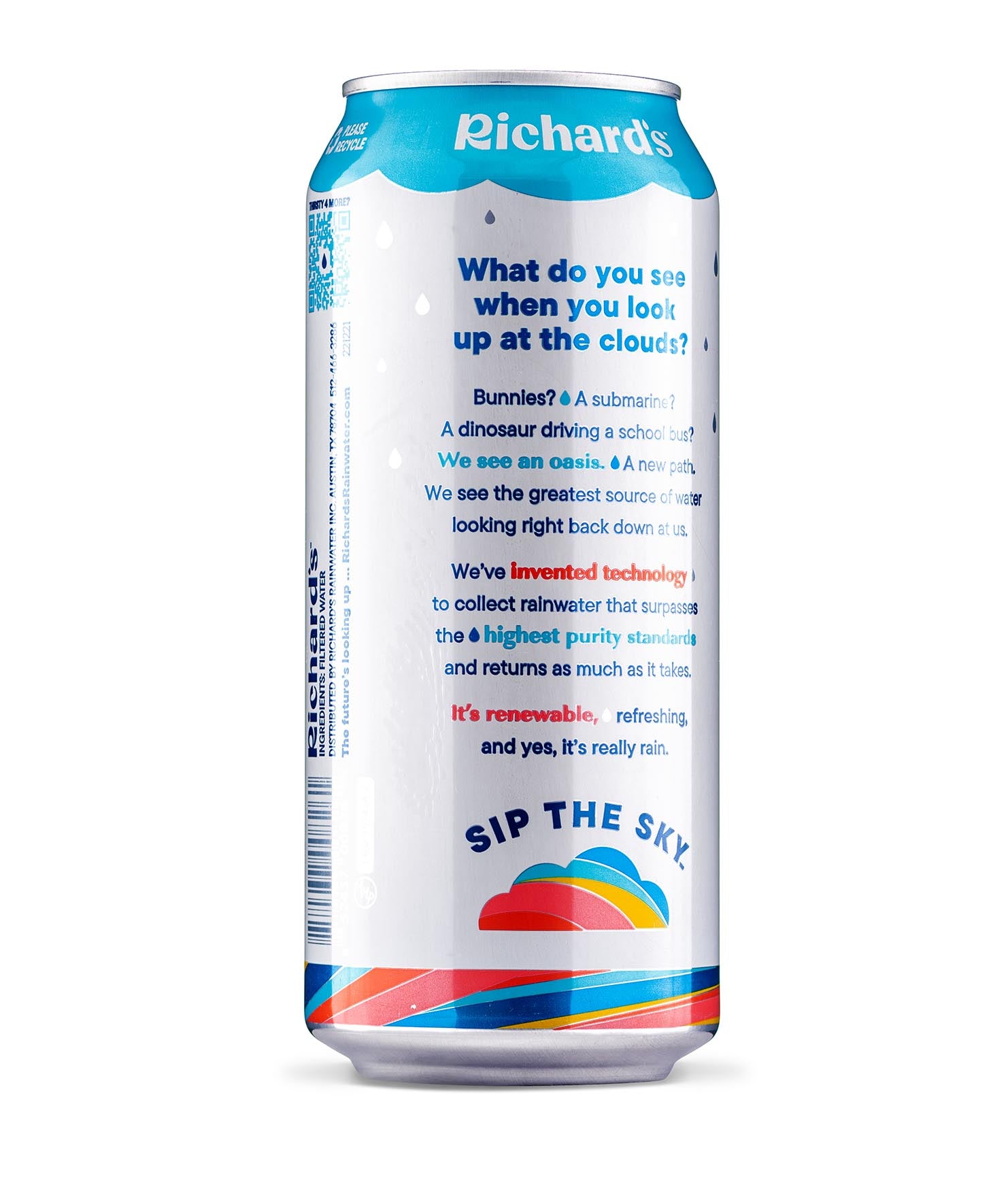 So clean and smooth, it’s almost sweet. You’ve never had water like this: 100% pure rain in an infinitely recyclable can. Plus, it’s cleaner than the strictest bottled water standards. We don’t need to put anything in it - no chlorine, fluoride, PFAS, BPA… you name it. Just like Mama Nature intended.