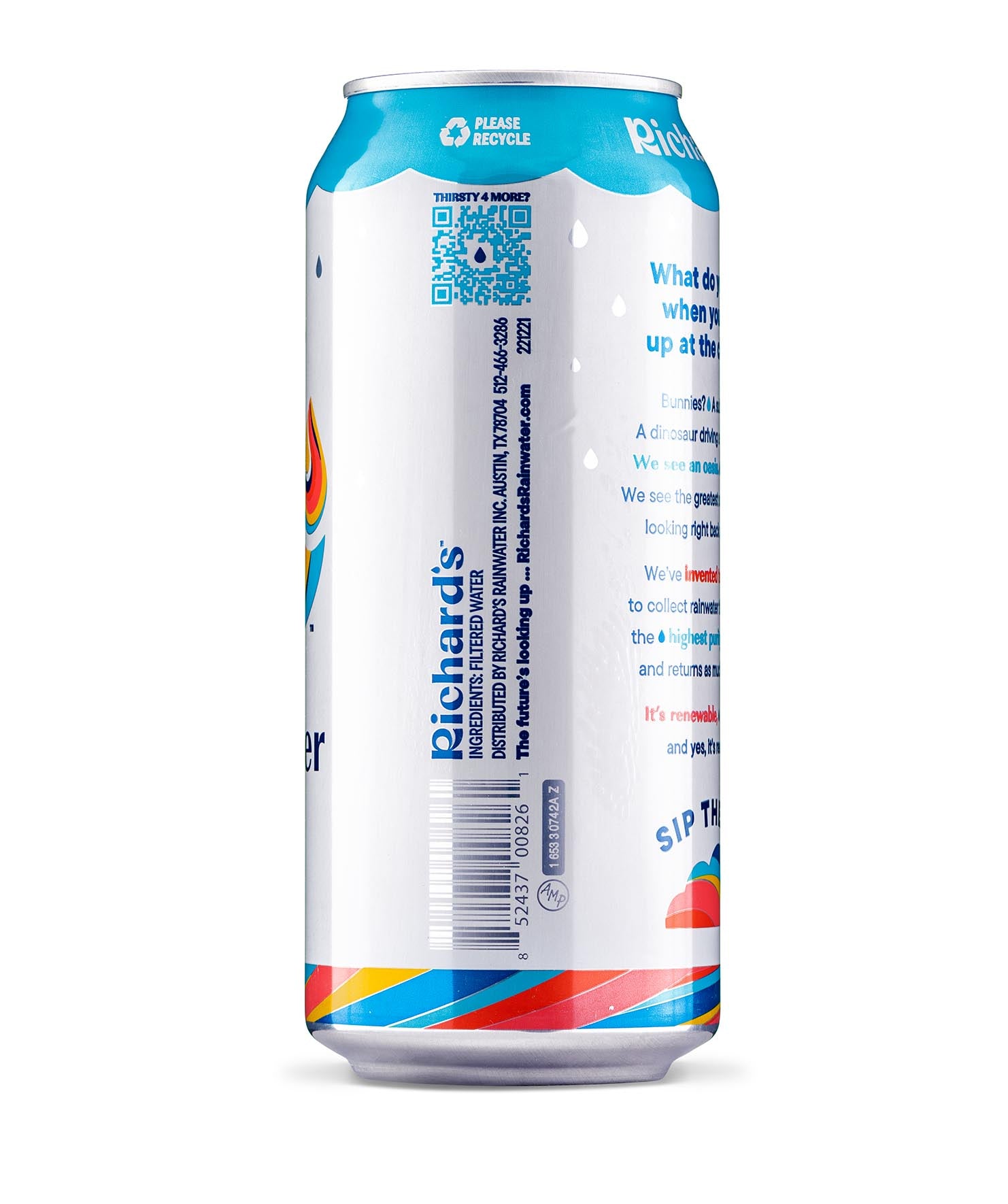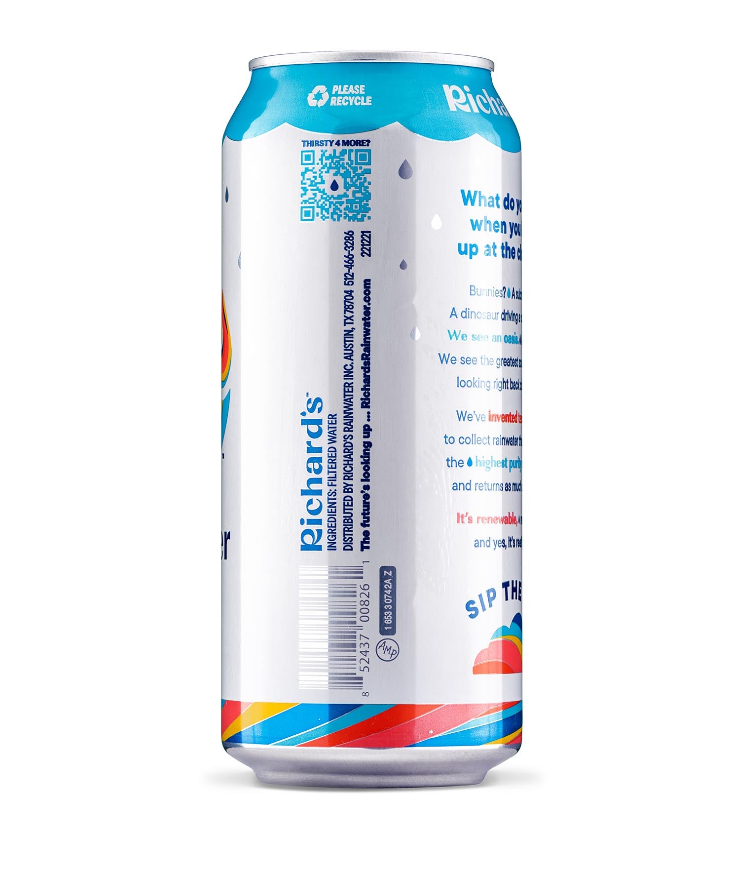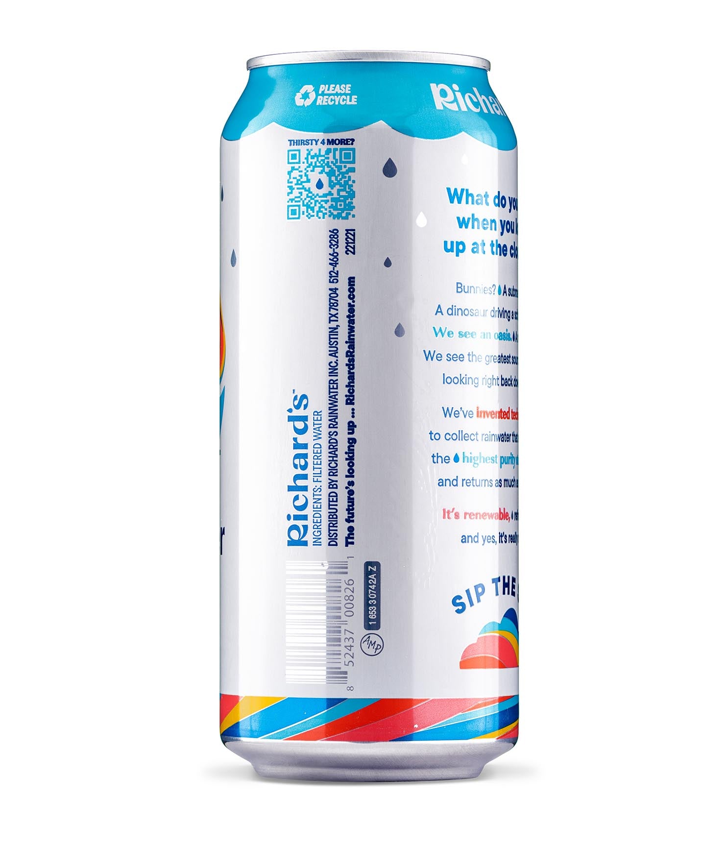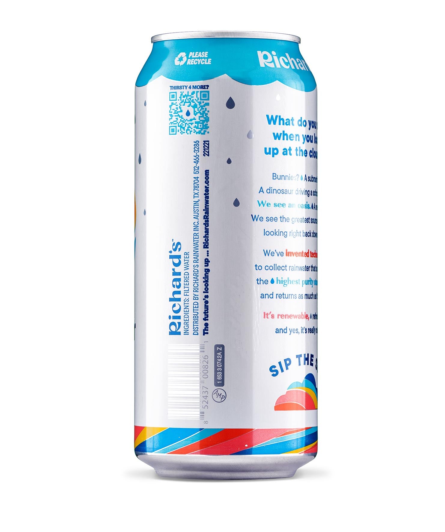So clean and smooth, it’s almost sweet. You’ve never had water like this: 100% pure rain in an infinitely recyclable can. Plus, it’s cleaner than the strictest bottled water standards. We don’t need to put anything in it - no chlorine, fluoride, PFAS, BPA… you name it. Just like Mama Nature intended.